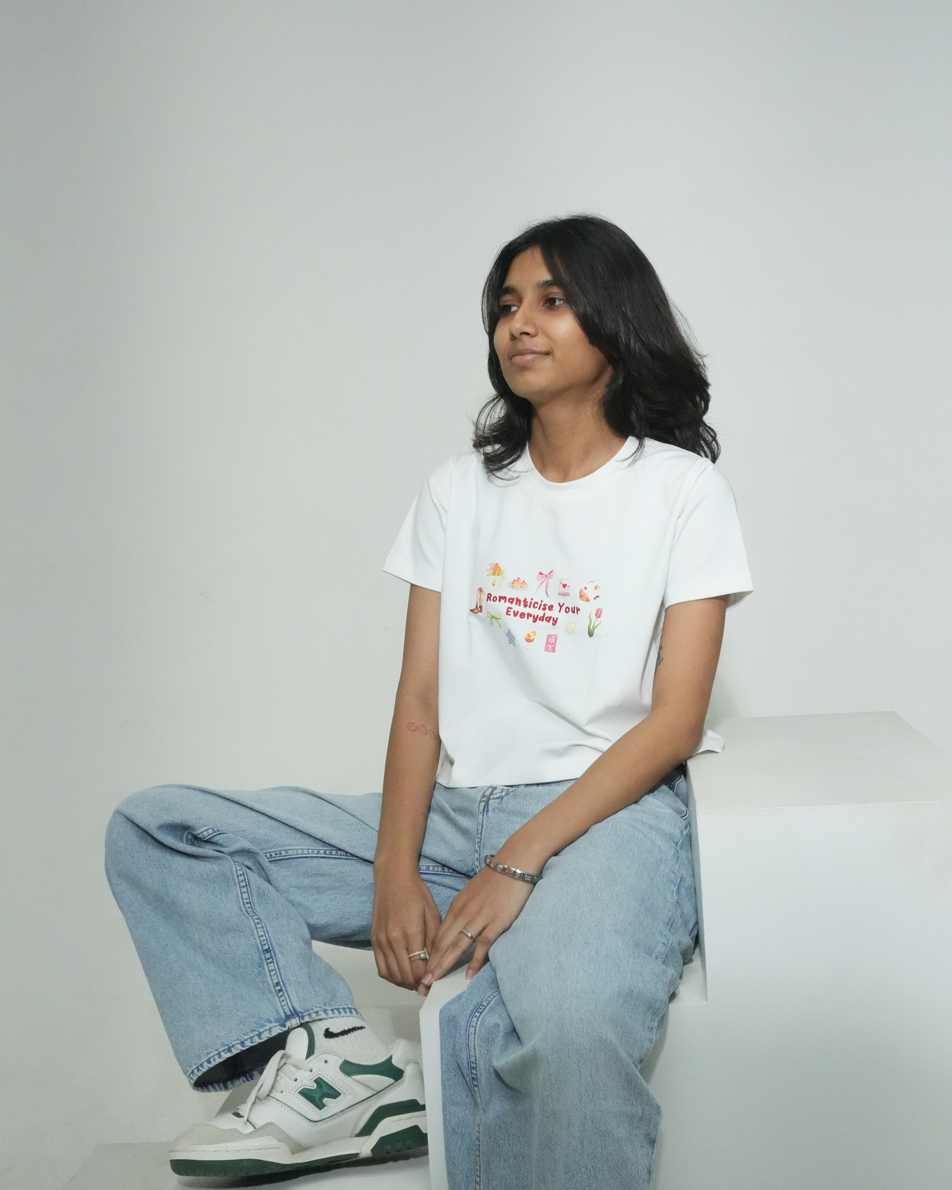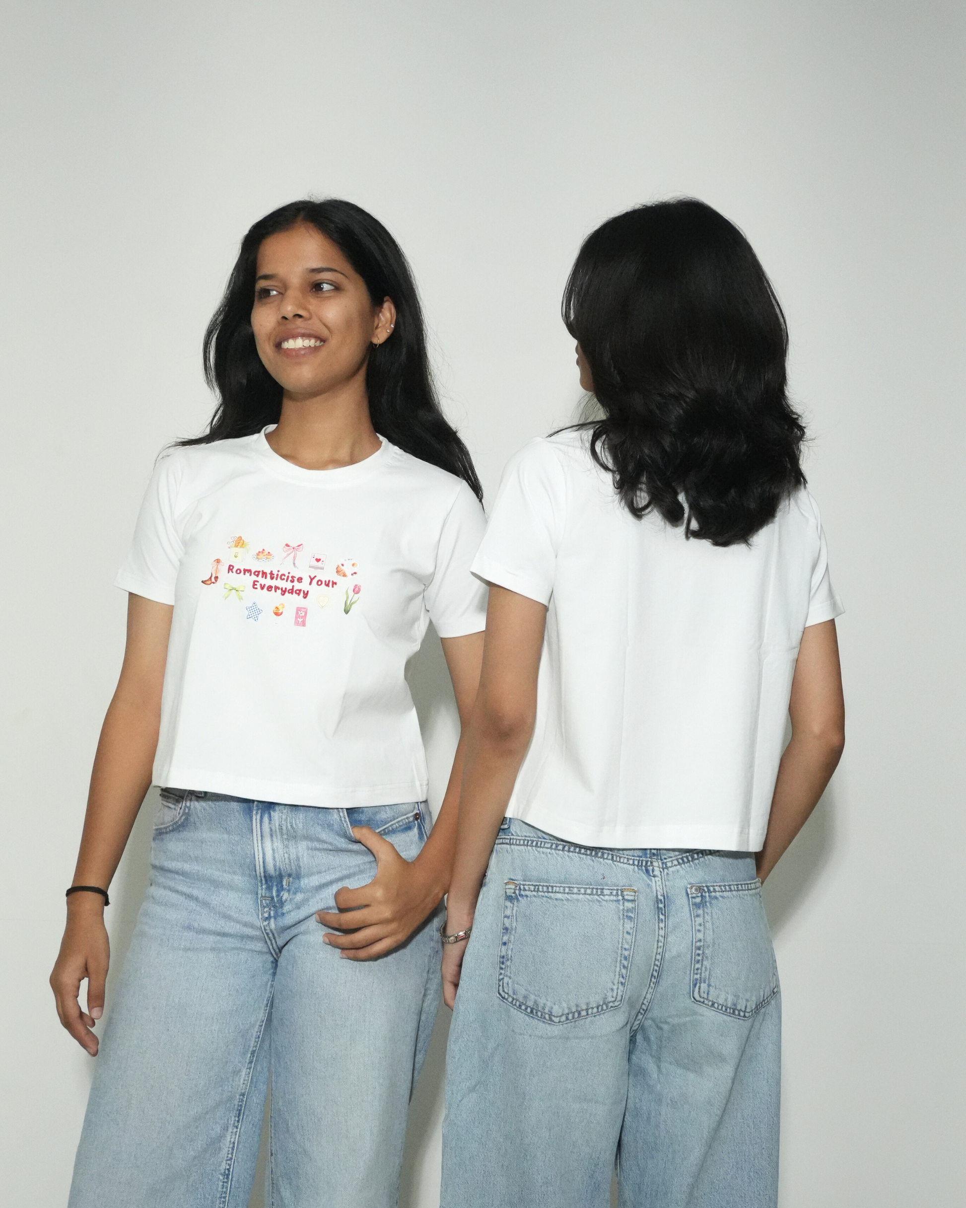 Made to romanticise the little things — this cropped tee brings soft structure and breezy ease to your everyday. Whether you’re lounging or layering, it’s the vibe.